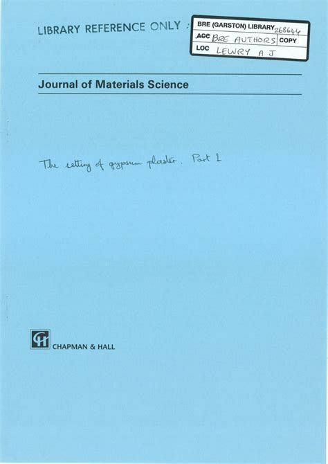 Free PDF The setting of gypsum plaster - SpringerLink PDF Book Paperback BookBoon